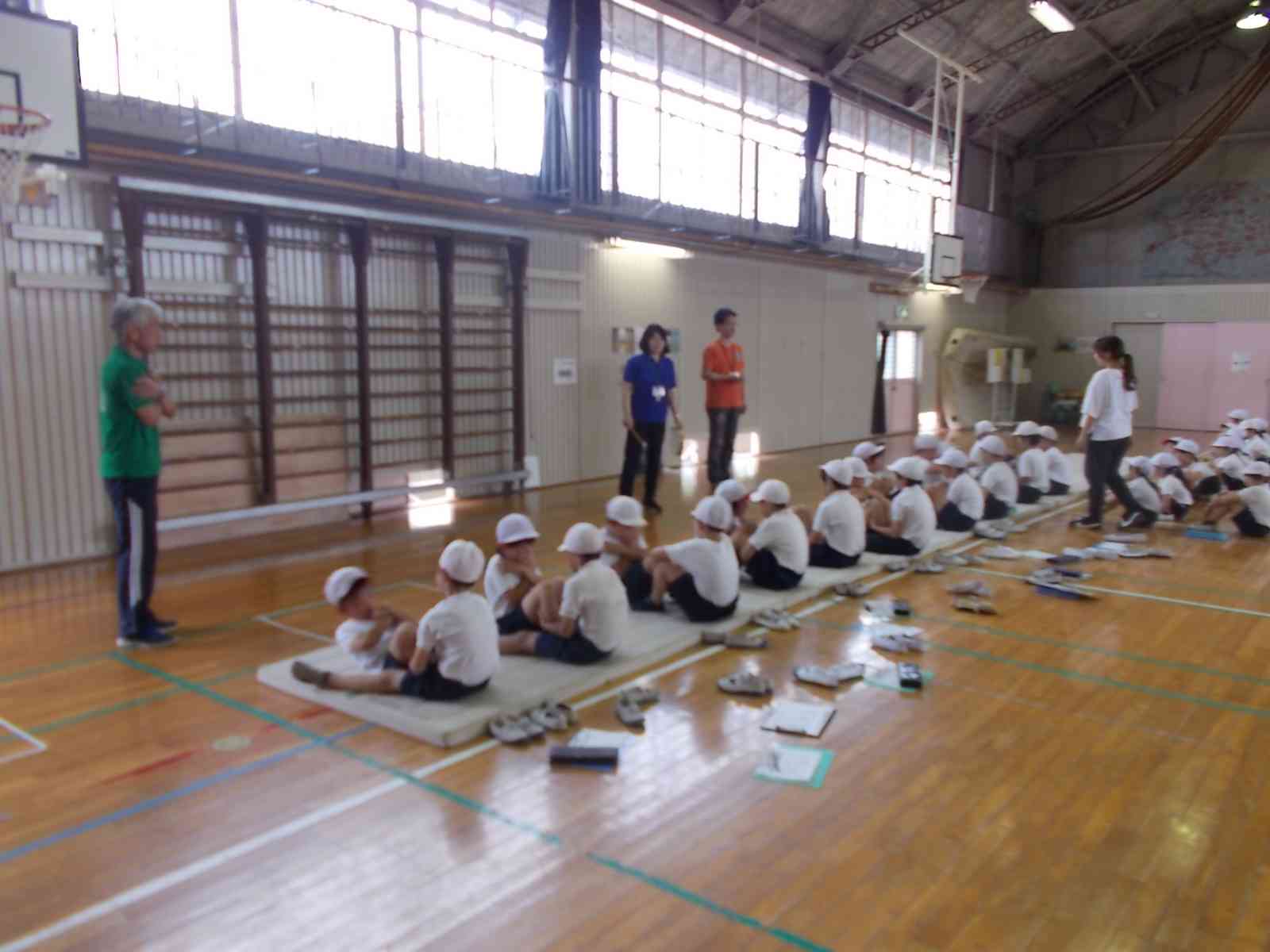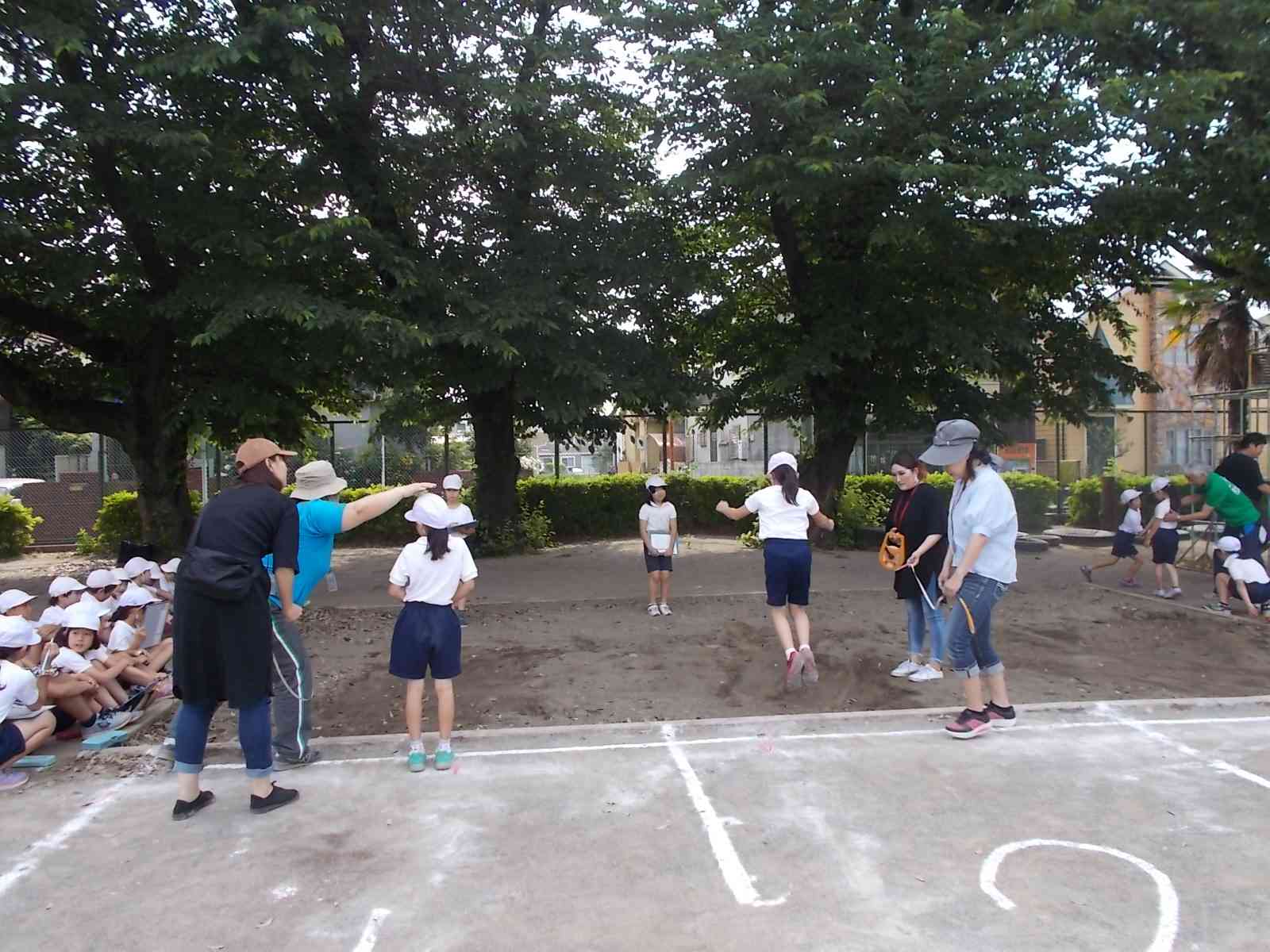 九小では、毎年6月に「体力テスト」を行っています。今日は、次の5種目を実施しました。今年は、1・6年、2・5年、3・4年のきょうだい学年で測定を実施しました。 立ち幅跳び(跳躍力) ソフトボール投げ(投力) 反復横跳び(敏捷性) 上体起こし(筋持久力) 長座体前屈(柔軟性) 初夏の日差しの中、17名の保護者ボランティアの方にご協力いただきました。ありがとうございました。