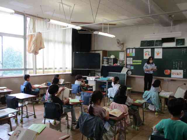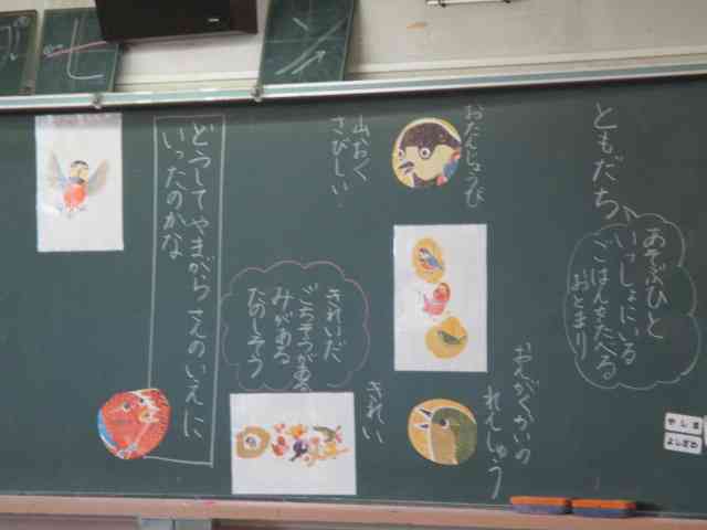 「2わのことり」という題材を使って“ともだちのことをかんがえる”授業を行っています。友達と仲良くするために大切なこと、お互いに助け合うことで生まれる感情についてなどをこの授業で一緒に考えています。 子どもたちは自分の考えを発表していました。