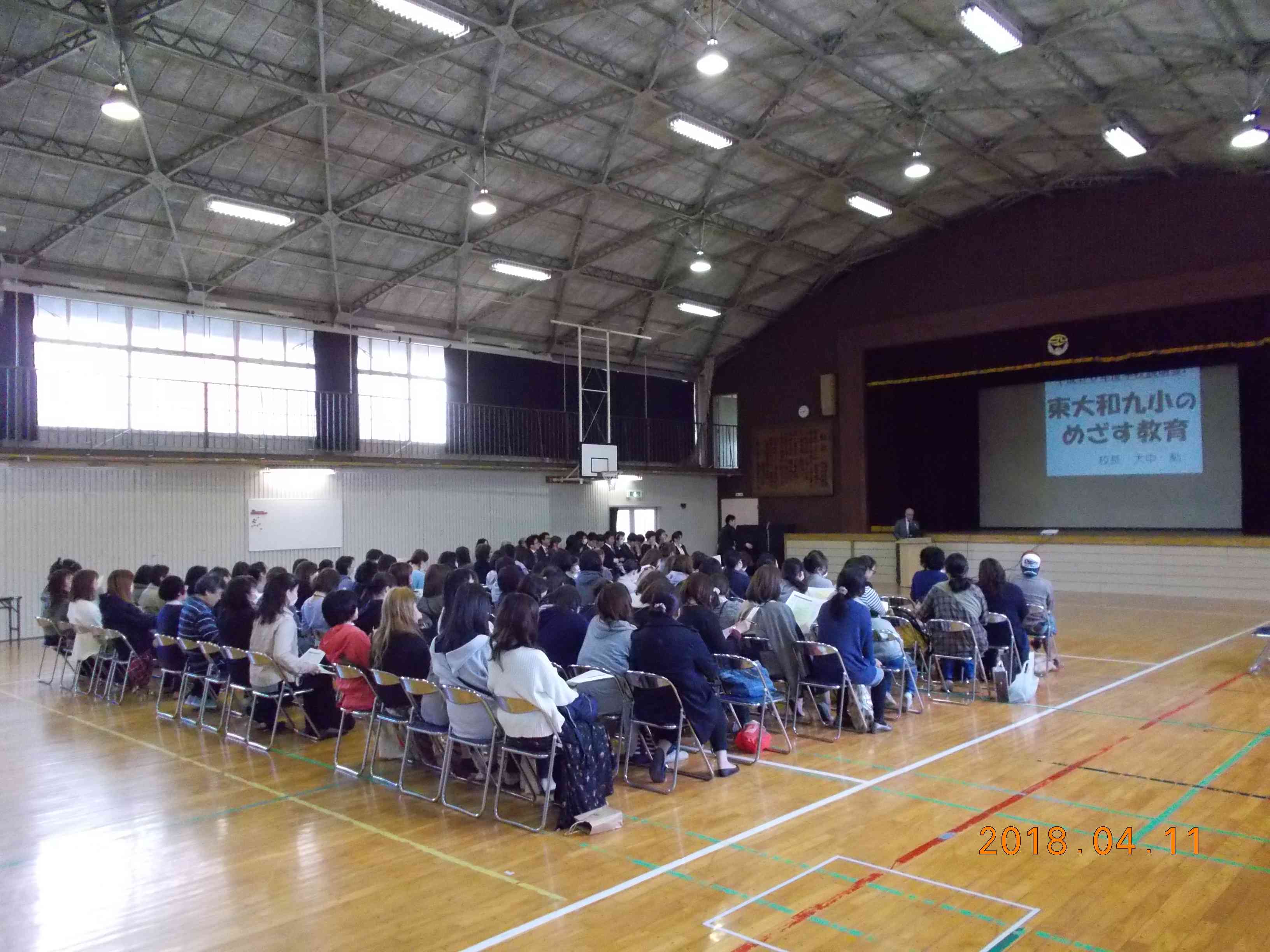 本日、九小体育館にて「平成30年度 学校説明会」を実施しました。教職員、学校運営協議会(Qカフェ)委員を紹介した後、今年度の九小の教育についての説明が行われました。124名の保護者の方々に参加いただきました。 その後、各学年に分かれて保護者会を行い、各学級の担任と保護者の方々の初顔合わせとなりました。全校で240名の参加をいただきました。(参加率87%) 今年1年、改めてよろしくお願いします。【添付ファイル】