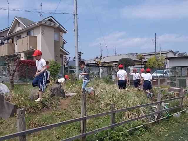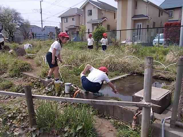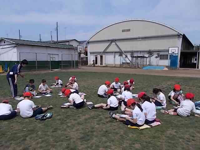 九小自慢の校庭芝生とビオトープで、2年生が生活科の学習を行いました。たくさんの”春”を見つけてスケッチしています。