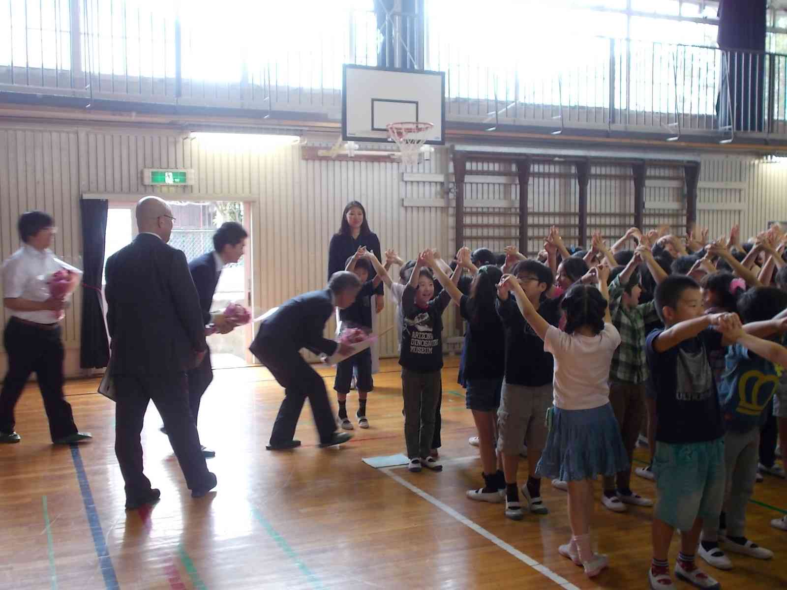 昨年までお世話になった先生方をお迎えして、離任式が行われました。久々の再会に、子供たちも先生方もうれしそうでした。すてきな時間となりました。
