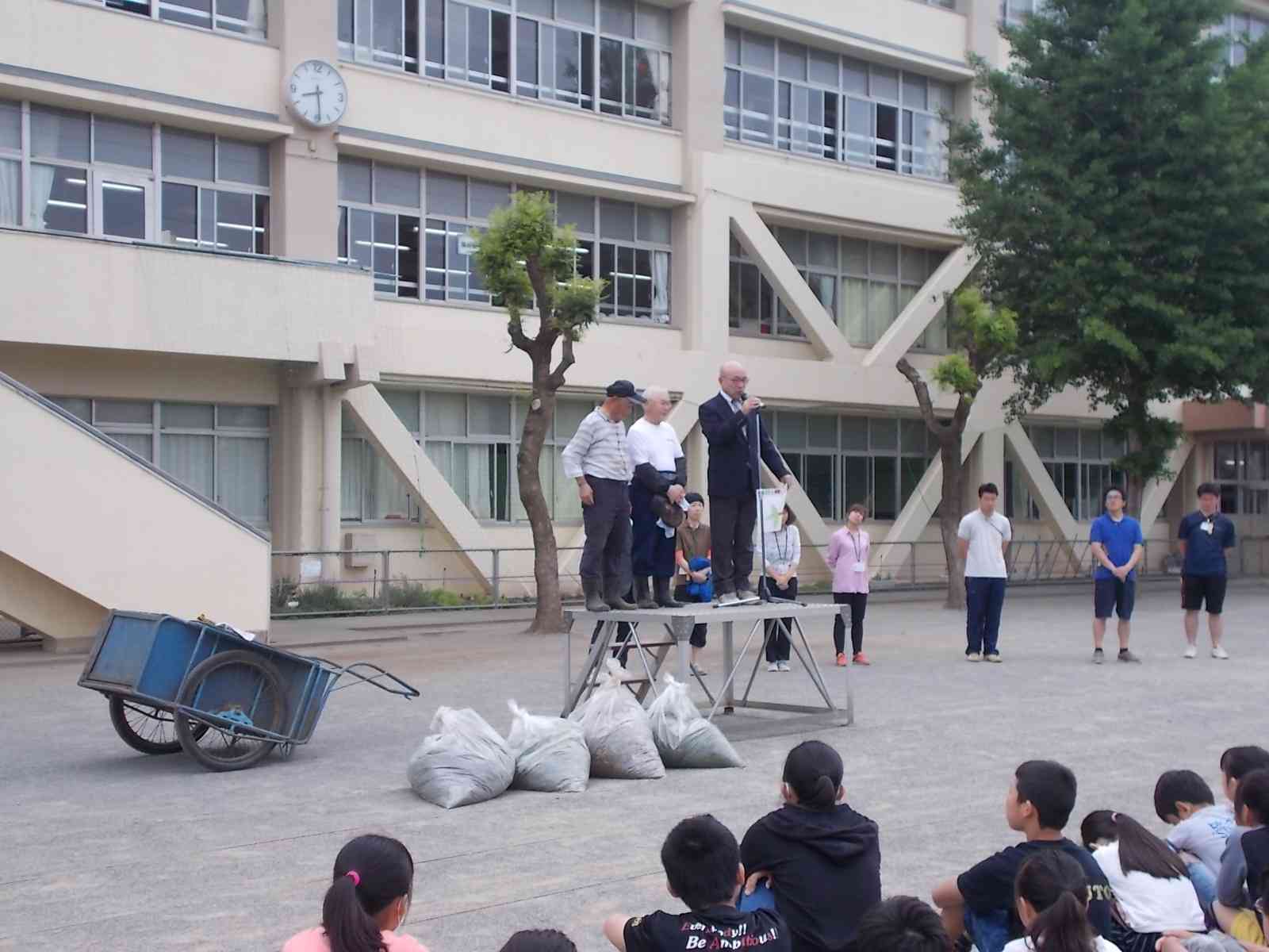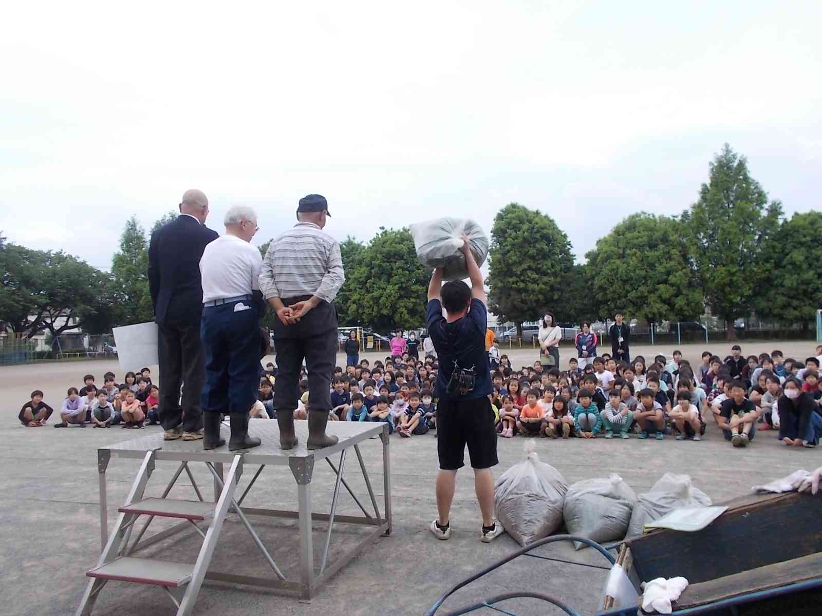 九小の校庭芝生の手入れは、Qプロの方々にご協力をいただいています。今朝も7時から芝刈りをしてくださっていました。(1時間30分/20kg×4袋) 今日の全校朝会でおふたりを紹介し、全校児童で日頃のお礼を言いました。 本日予定していた校庭芝生の苗植えは、雨天の予報のため、残念ながら延期となりましたが、新たな日程が決まりましたら改めてお知らせいたします。校庭芝生600→800平方メートルに向けて、保護者・地域の皆様のご協力、よろしくお願いします。【添付ファイル】