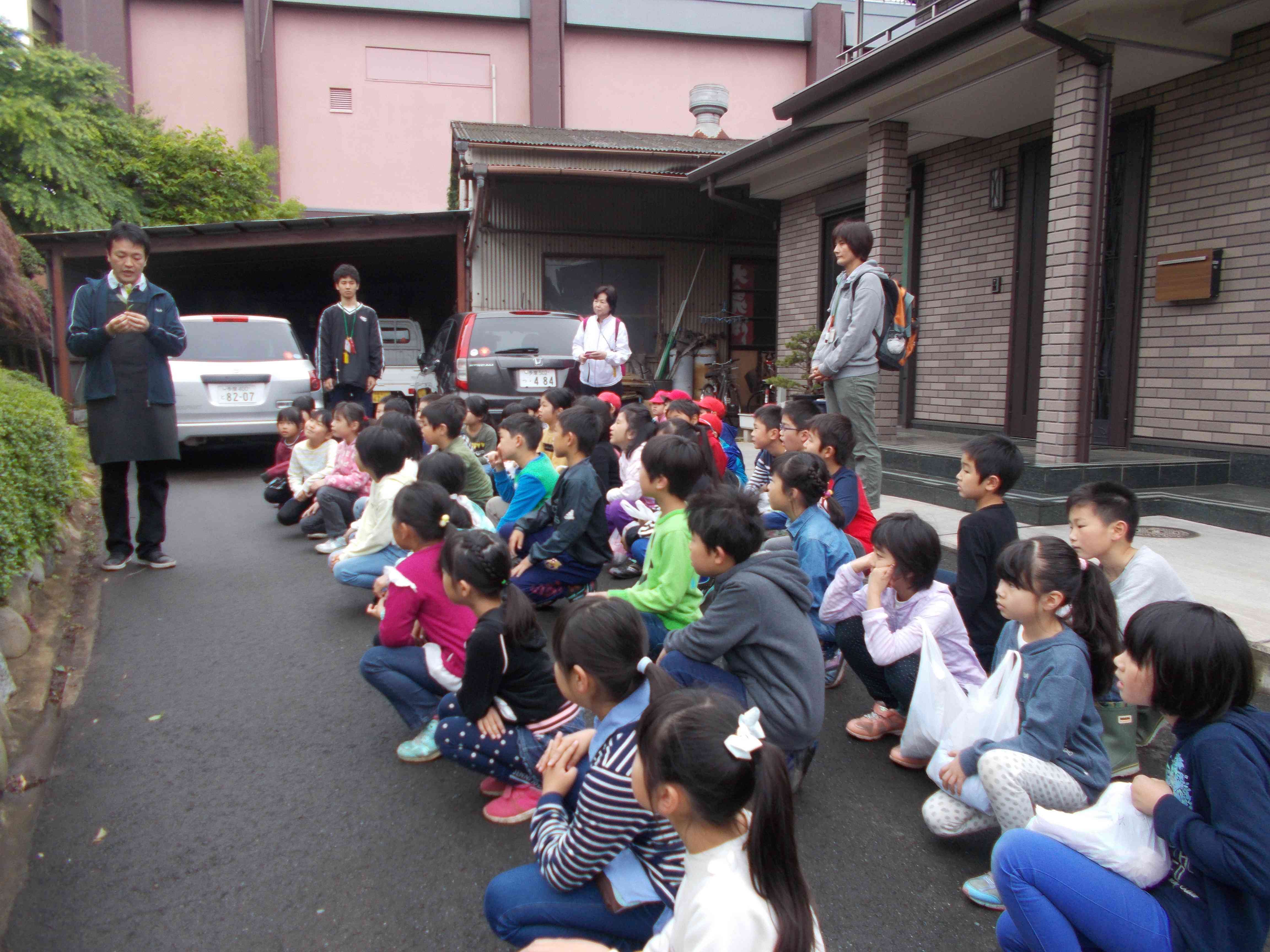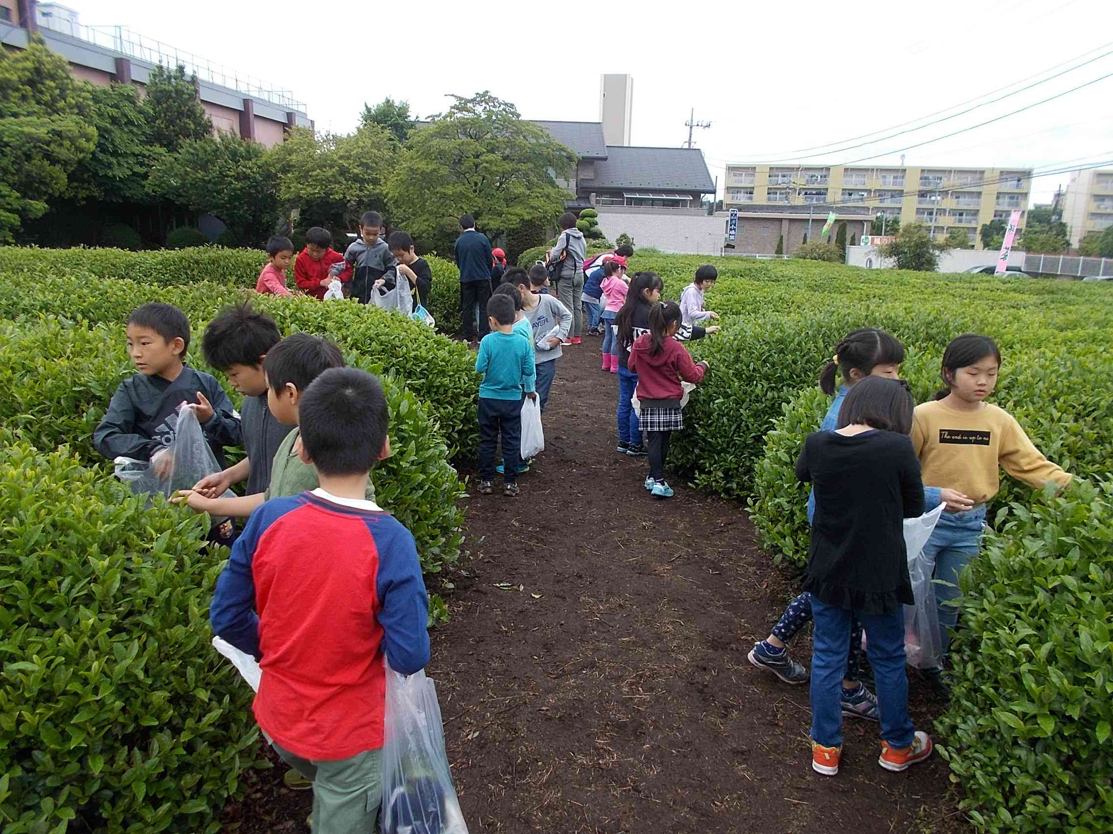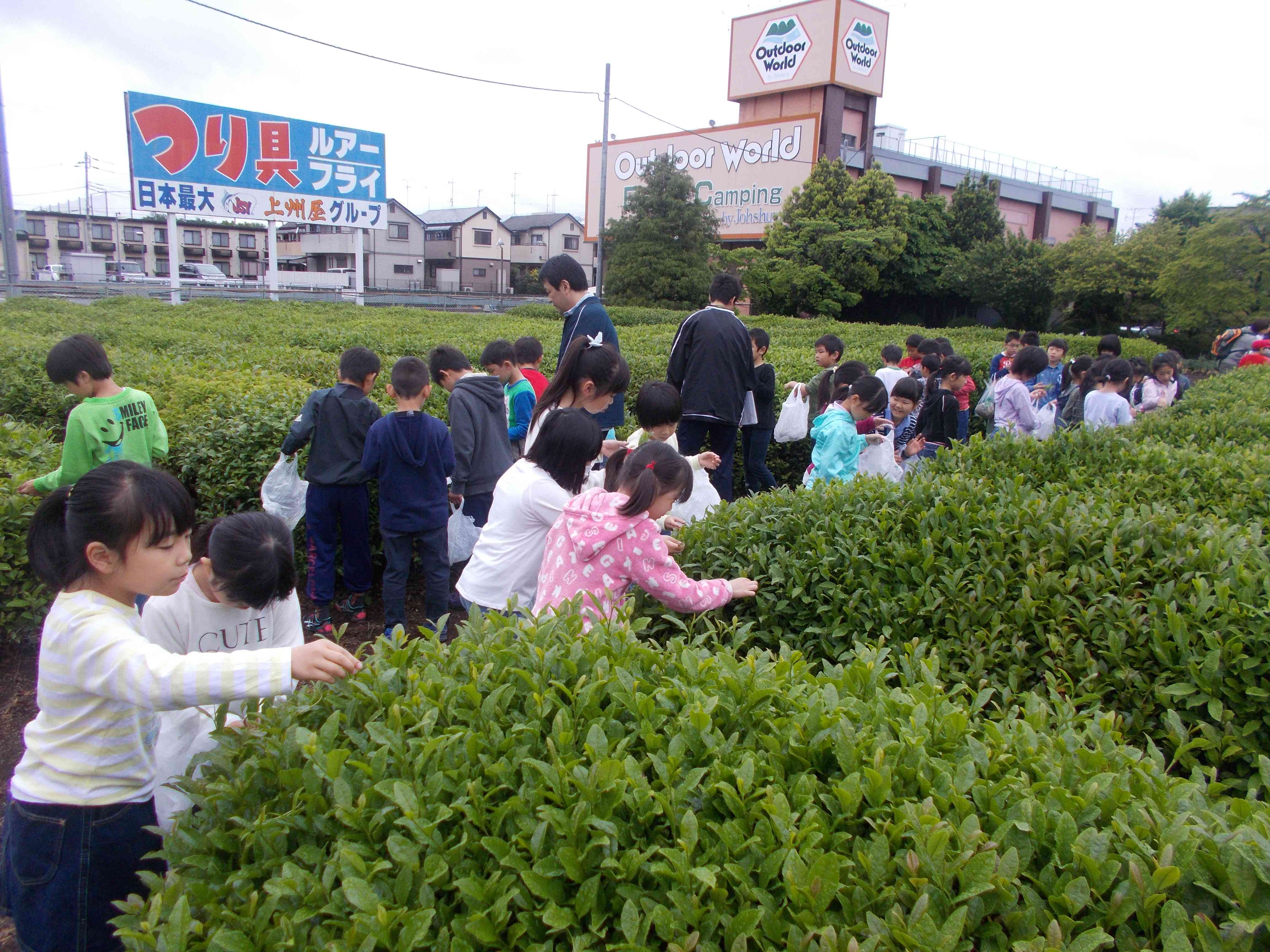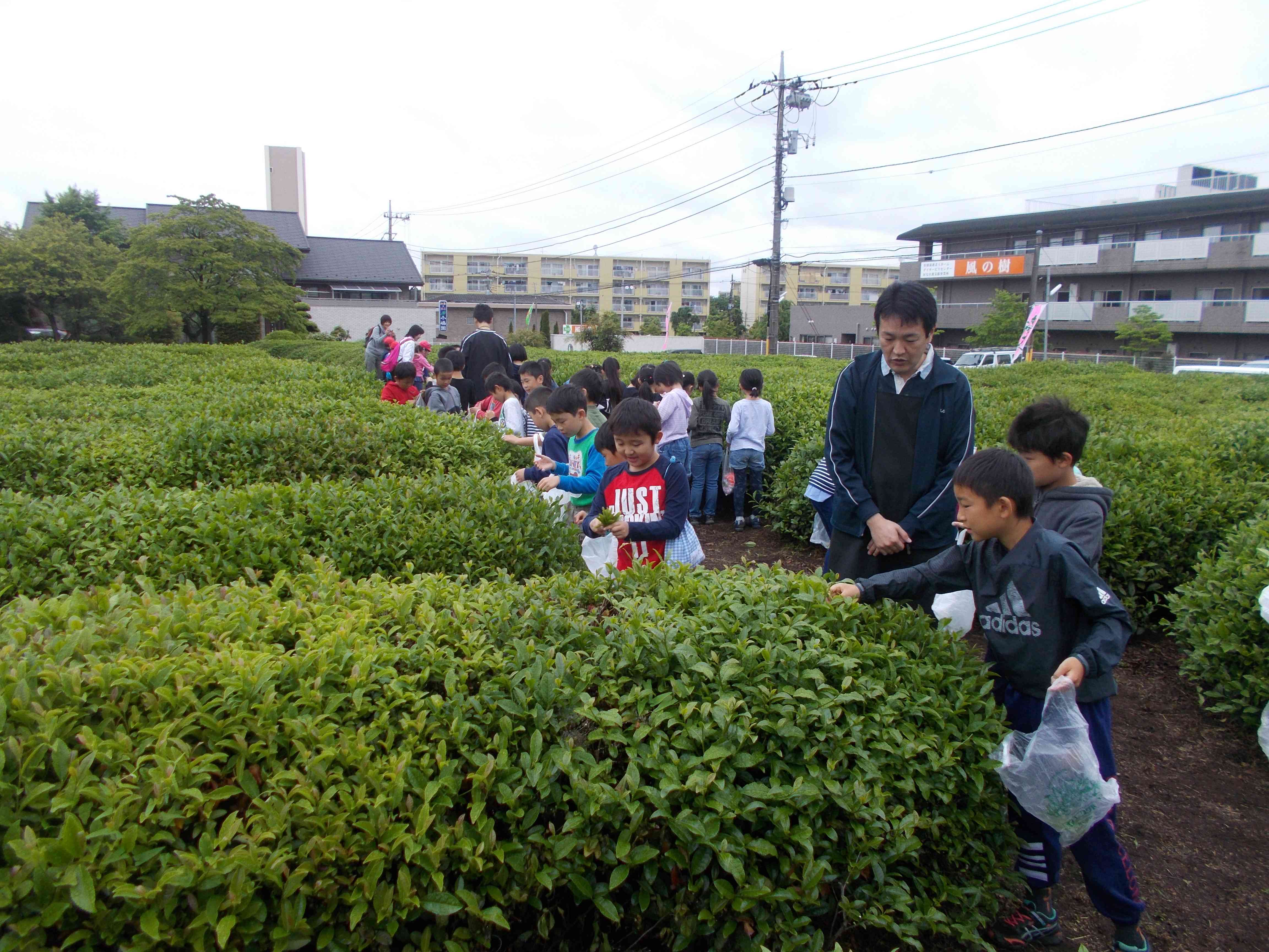 5月8日(火) 「茶摘み・製茶体験(3年生)」 1.お茶の葉を摘む