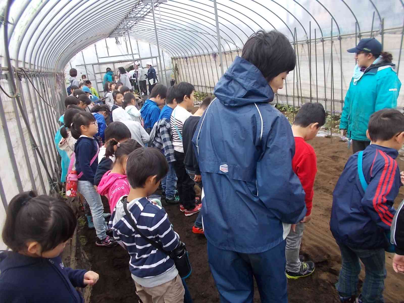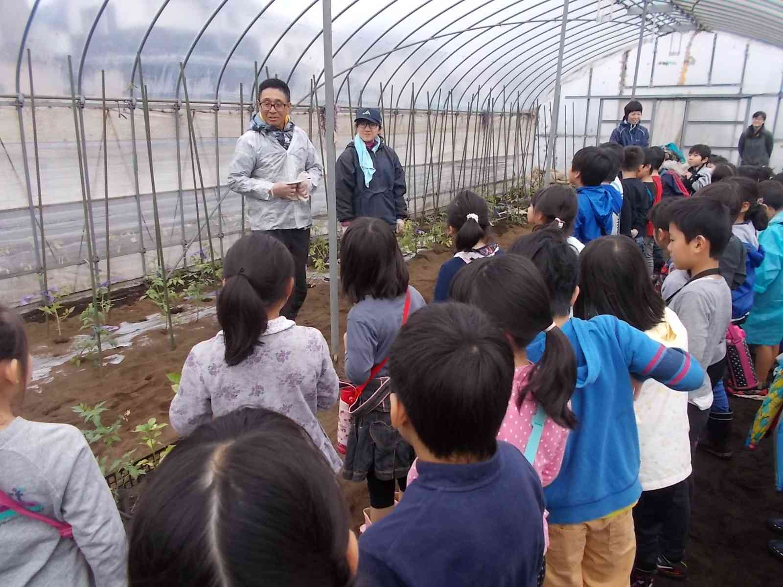 2年生は、生活科で野菜を育てる学習を行います。今年は、近隣の「やすじい農園」様のご協力により、畑をお借りして野菜を育てさせていただくことになりました。 今日が第1回目の訪問日でした。あいにくの雨でしたが、ビニルハウスの中でお話を伺いました。また、行き帰りの保護者の方10名にもご協力をいただきました。ありがとうございました。